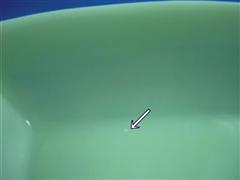 カップの形状が四角が特徴のチャームです。裏に着色があり、わずかな擦れキズがあります。表にはホワイトスポット、着色、凹みが見られますが艶は良く、使用感はありません。使いやすいサイズです。