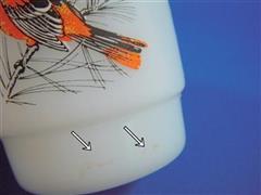側面、リムに着色、黒点がありますが艶はあり、使用感はありません。こちらのバードは両面ともムクドリモドキです。