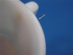 リムに擦れキズが見られます。側面にわずかに着色がありますが内面の艶は良く使用感はありません。チカディー…アメリカコガラ、カーディナル…ショウジョウコウカンチョウの組み合わせです。バードシリーズで刻印がアンカーマークのマグはFireKingの刻印のものより地色の白が少しくすんでいます。