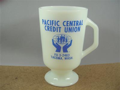 信用金庫クレジットユニオンのマグです。製造時からの凹みラインがあり、足の部分に劣化線が見られます。ハンドルあたりに練ムラのような線が見られます。