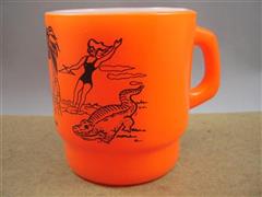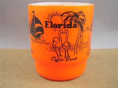 フロリダのご当地マグ。オレンジ色があざやかですね。所々に色の剥がれ、着色が見られますが内面を見る限り使用感は感じられません。食卓が華やぎます~。