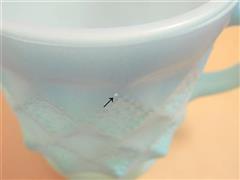 側面にわずかな色に剥がれ。リムに着色、ホワイトスポットが見られます。底面に劣化線があります。全体に色が薄く、艶がない感じですが、これがまたいい感じなのかもしれません。