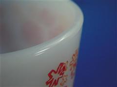 口元に製造時にできたMilky(白濁)、側面底面方向にSunspot(黒点)があります。内面を見る限り使用感のない品です。当店の人気マグです。