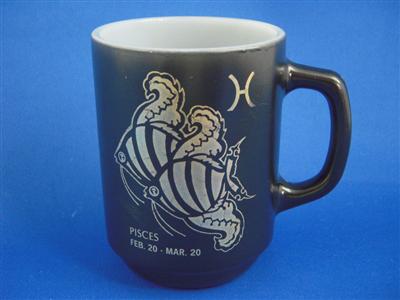 星座占いをモチーフとしたマグシリーズです。パイシーズはうお座を意味しています。プリント絵柄にわずかな経年劣化が見られますが、われ、かけなどのない美品です。保存状態は極めて良好です。内面を見る限り使用感はありません。