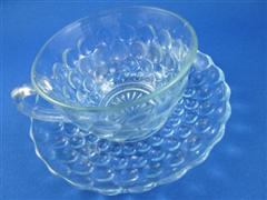バブルの模様がレトロな雰囲気を漂わせています。光を透過させるとその光が描く模様がとても綺麗です。われ、かけなどのない、とても綺麗なカップ&ソーサーです。オススメの品です。
